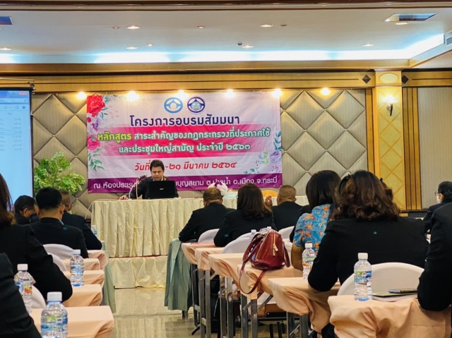 วันที่ 20-21 มีนาคม 2564 สหกรณ์ออมทรัพย์ตำรวจภูเก็ต จำกัด โดย นางสาวกิ่งกาญจน์ เกิดสุข ผู้จัดการ พร้อมด้วยเจ้าหน้าที่สหกรณ์ เข้าร่วมการอบรมสัมมนา โครงการอบรมสัมมนาหลักสูตร สาระสำคัญของกฎกระทรวงฉบับใหม่ที่ประกาศใช้ และประชุมใหญ่สามัญประจำปี 2563 ณ ห้องประชุมเจ้าฟ้า โรงแรมบุญสยามจังหวัดกระบี่ ต.ปากน้ำ อ.เมือง จ.กระบี่